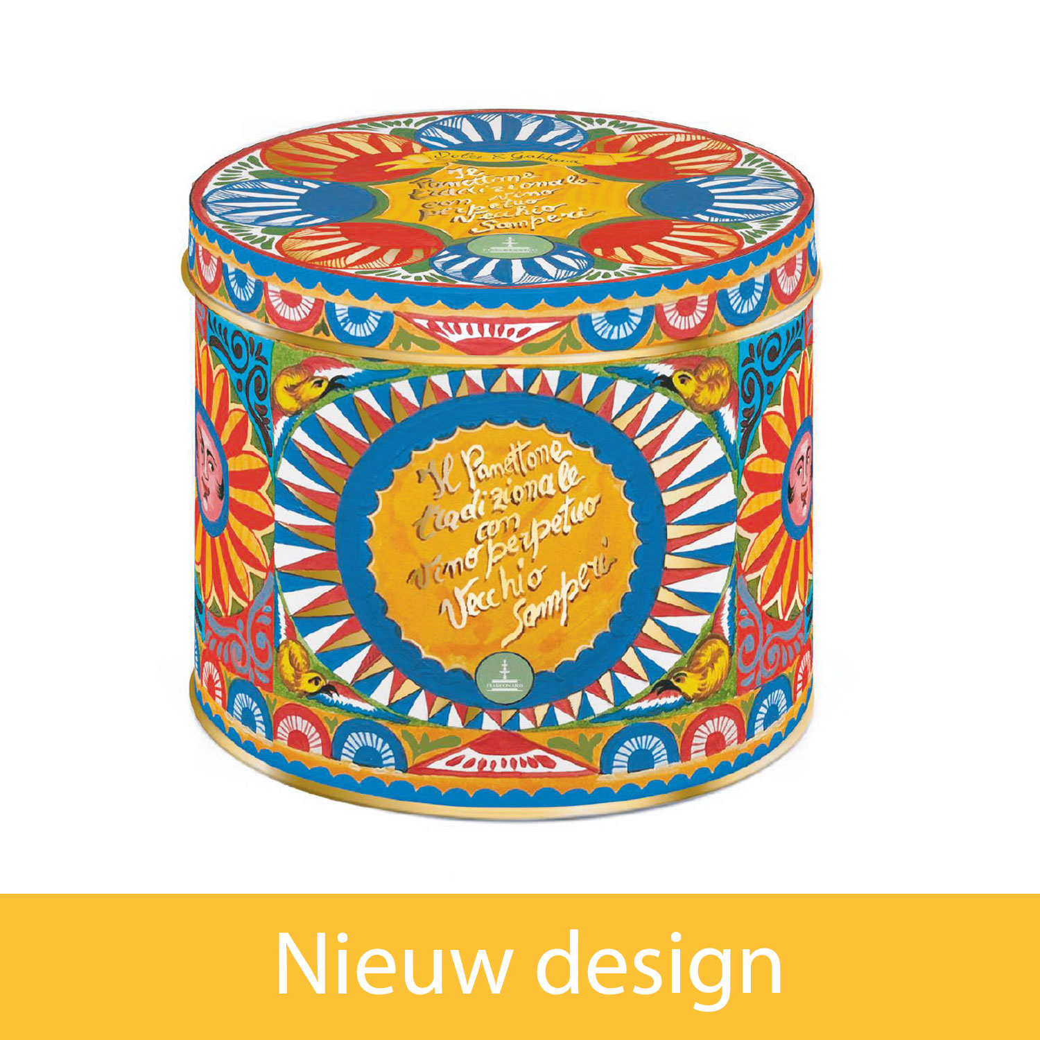 Ambachtelijk gebakken product van Siciliaans meel, verrijkt met sinaasappel, citroen en rozijnen op smaak gebracht met de eeuwigdurende versterkte wijn van Sicilië “Vecchio Samperi”. De mooie verstuiver met de kostbare wijn kan over de Panettone gesprayd worden voor een buitengewone smaakbeleving.